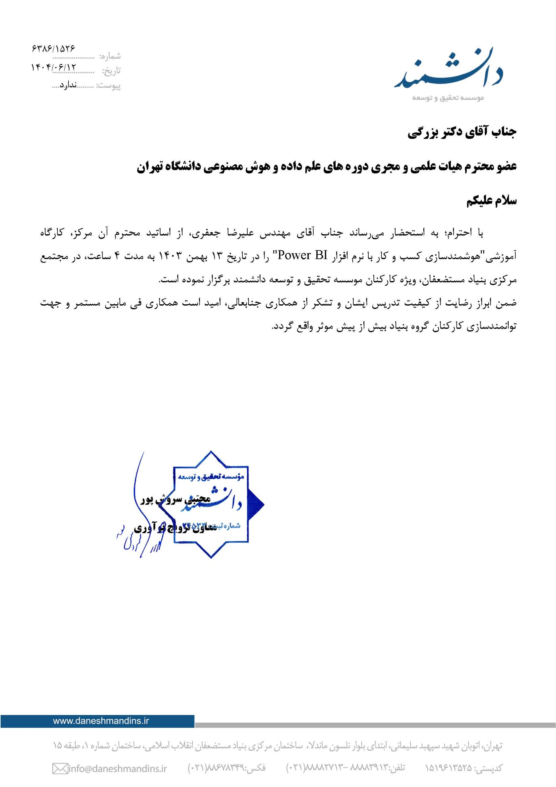 برگزاری دورهی کاربردی هوش مصنوعی ویژه سازمانها و شرکتها
