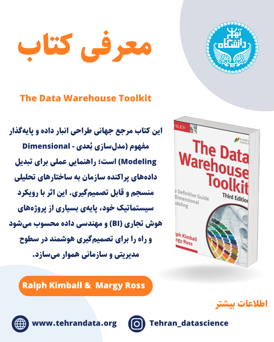 کتاب The Data Warehouse Toolkit نوشتهی Ralph Kimball، پایهگذار مفهوم «مدلسازی بُعدی» (Dimensional Modeling)، نسخهی جدیدی از دانش معماری داده و طراحی سیستمهای تحلیلی سازمانی ارائه میدهد. این اثر با ترکیب تجربههای پروژههای واقعی و ساختار فنی استاندارد، به عنوان مرجع اصلی متخصصان هوش تجاری (BI) و مهندسی داده شناخته میشود.
