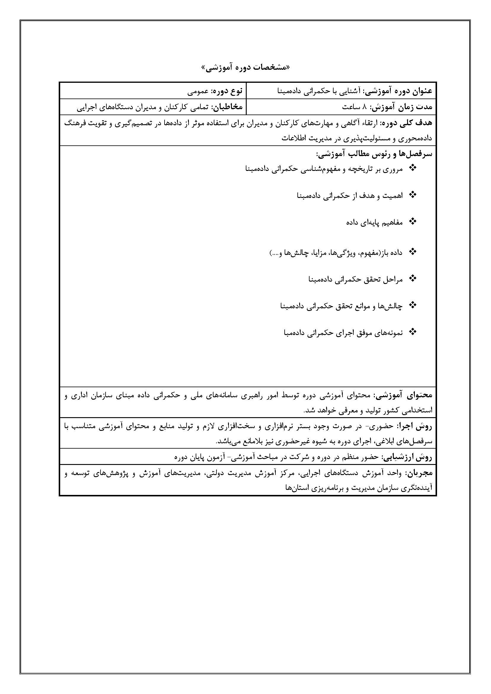 دوره آشنایی با حکمرانی داده مبنا ویژه سازمانها و شرکتها